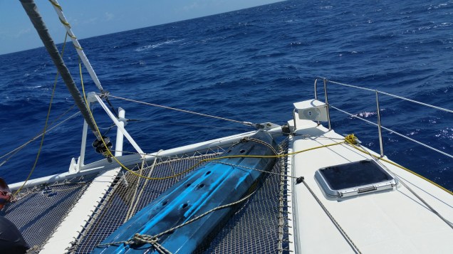 Lembrem que na prôa só de água temos 1 Tonelada e uma âncora super dimensionada e pesada pendurada, vou tentar navegar sem ela no local.