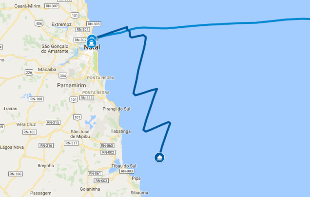 O motor de Bombordo ficou bom. Até agora 82,7 nm navegadas, Cabedelo está a 29 nm.