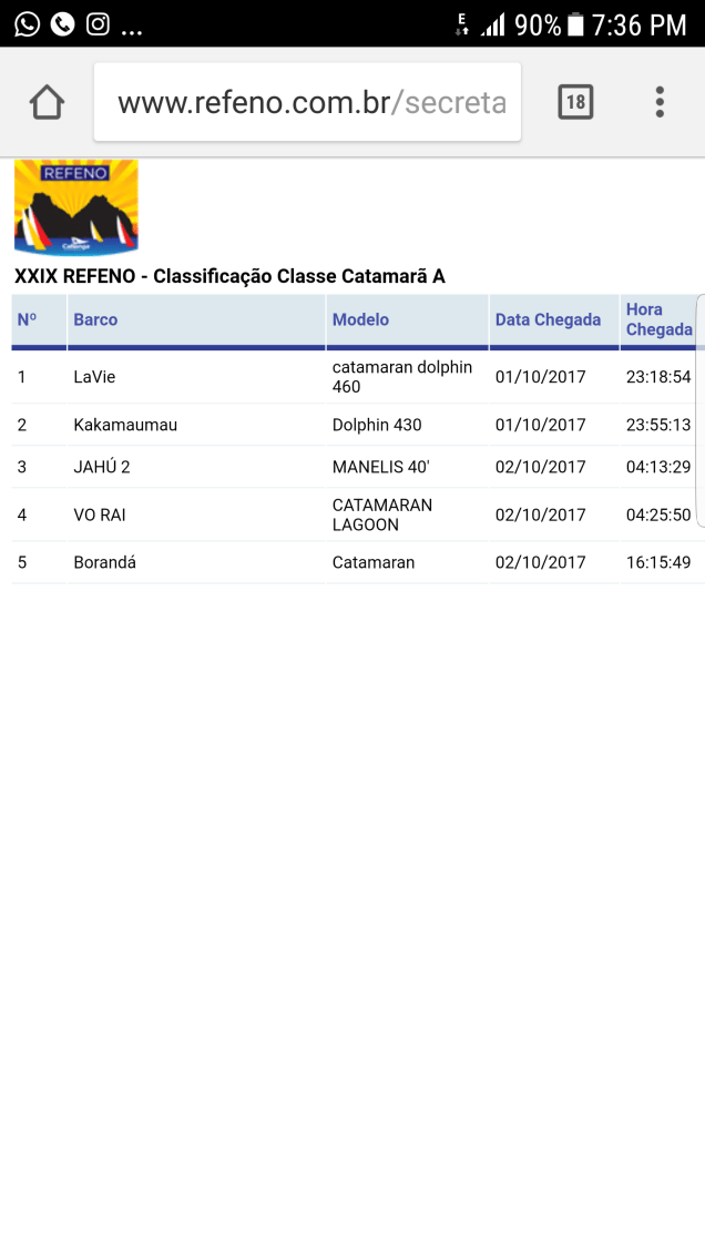 La Vie foi o primeiro Catamarã a cruzar a linha de chegada com o tempo de 34:18’54”.