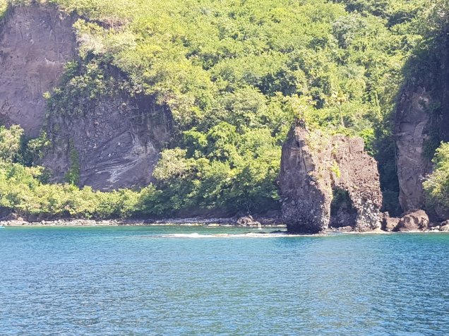 Visitamos o monte Pelé, antigo vulcão e arredores. Passamos por vilarejos lindos e antigos. Cruzamos a Ilha por uma estrada fantástica, subindo e descendo a serra. Muito parecida com a estrada da Serra do mar que vai para Paraty. Estrada curta, no meio da floresta…Muito bacana, no caminho algumas cachoeiras.