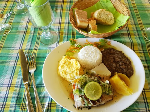 Paramos no restaurante Le Point deVue, especializado em comida crioula, segundo o guia e tripadvisor o melhor do Norte da Ilha.