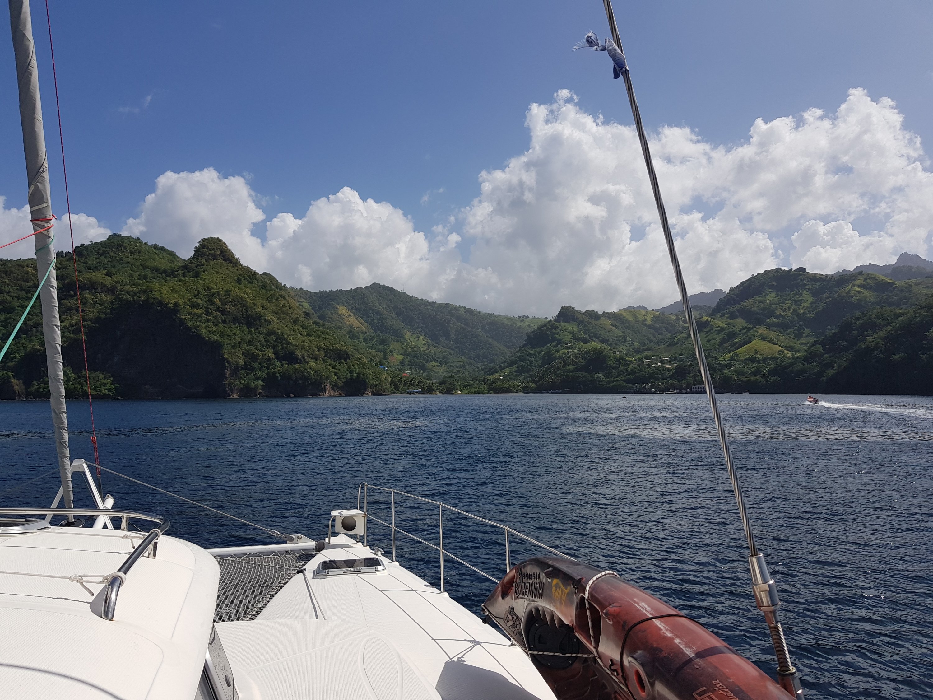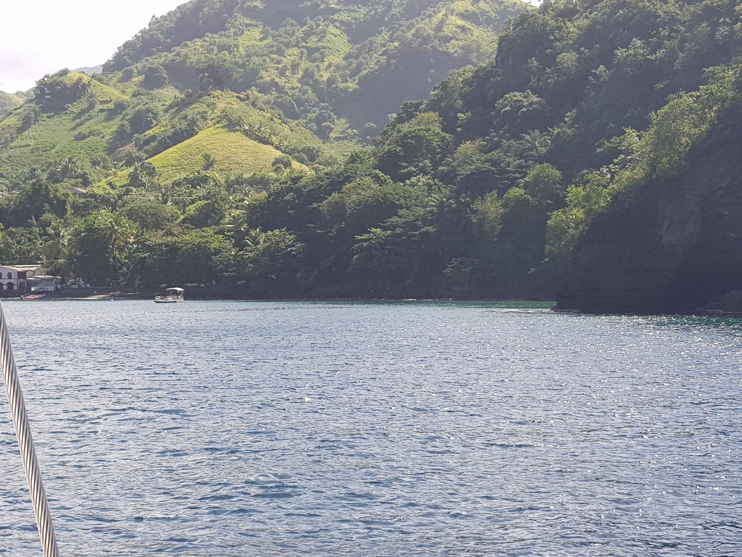 Visitamos o monte Pelé, antigo vulcão e arredores. Passamos por vilarejos lindos e antigos. Cruzamos a Ilha por uma estrada fantástica, subindo e descendo a serra. Muito parecida com a estrada da Serra do mar que vai para Paraty. Estrada curta, no meio da floresta…Muito bacana, no caminho algumas cachoeiras.