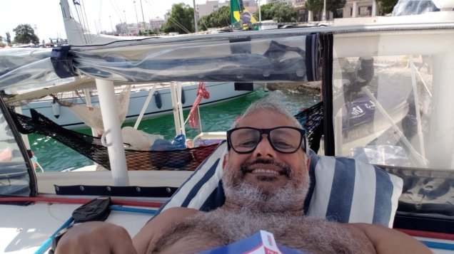 Saindo para ver o por do sol. Deixamos Nikita tomanfo conta fo barco.