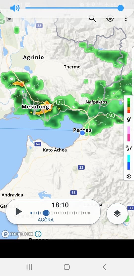 Sol estava a pino, em um momento olhei para o horizonte acima das montanhas e me assustei. Chamei Neo e falei:- olha o que vem ali!! Consultei a previsão meteorológica e nada aparecia, fui olhar no StormRadar e vi tratar-se de um temporal com descarga elétrica vindo do mar Egeu.