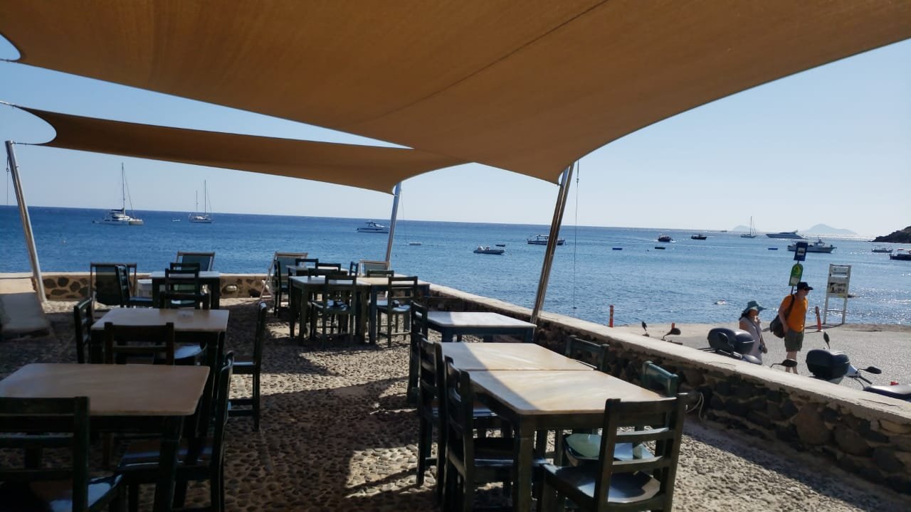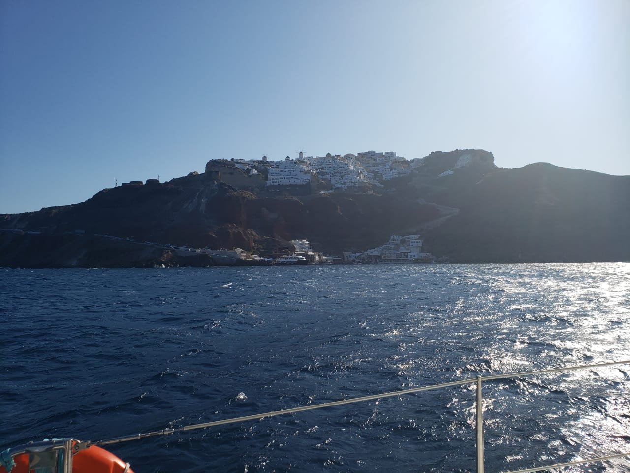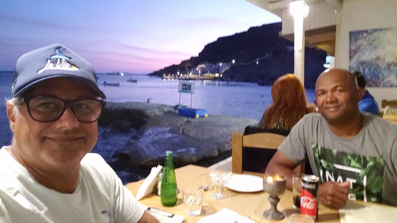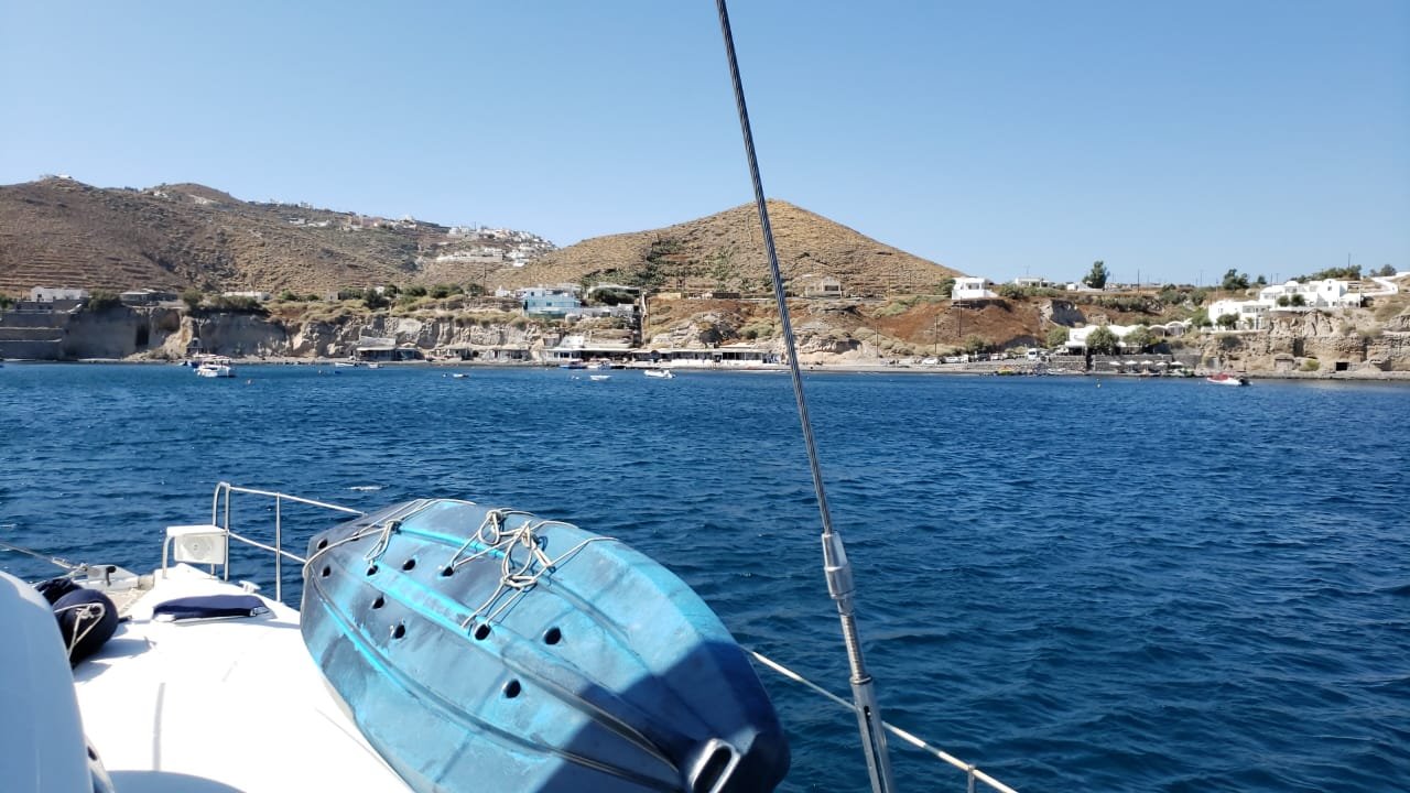 LaVie retornou para Grécia. Estamos novamente em Santorini. Mudamos a ancoragem para a praia de Acrotiri. Lá em Perissa estava impraticável ventos fortes e ondas de quase 1,5 metros. Seria impossível embarcar a tripulação que chega amanhã cedo. Dessa vez receberemos um casal de amigos smigos, Gilberto e Susana. Aline está vindo com eles.
