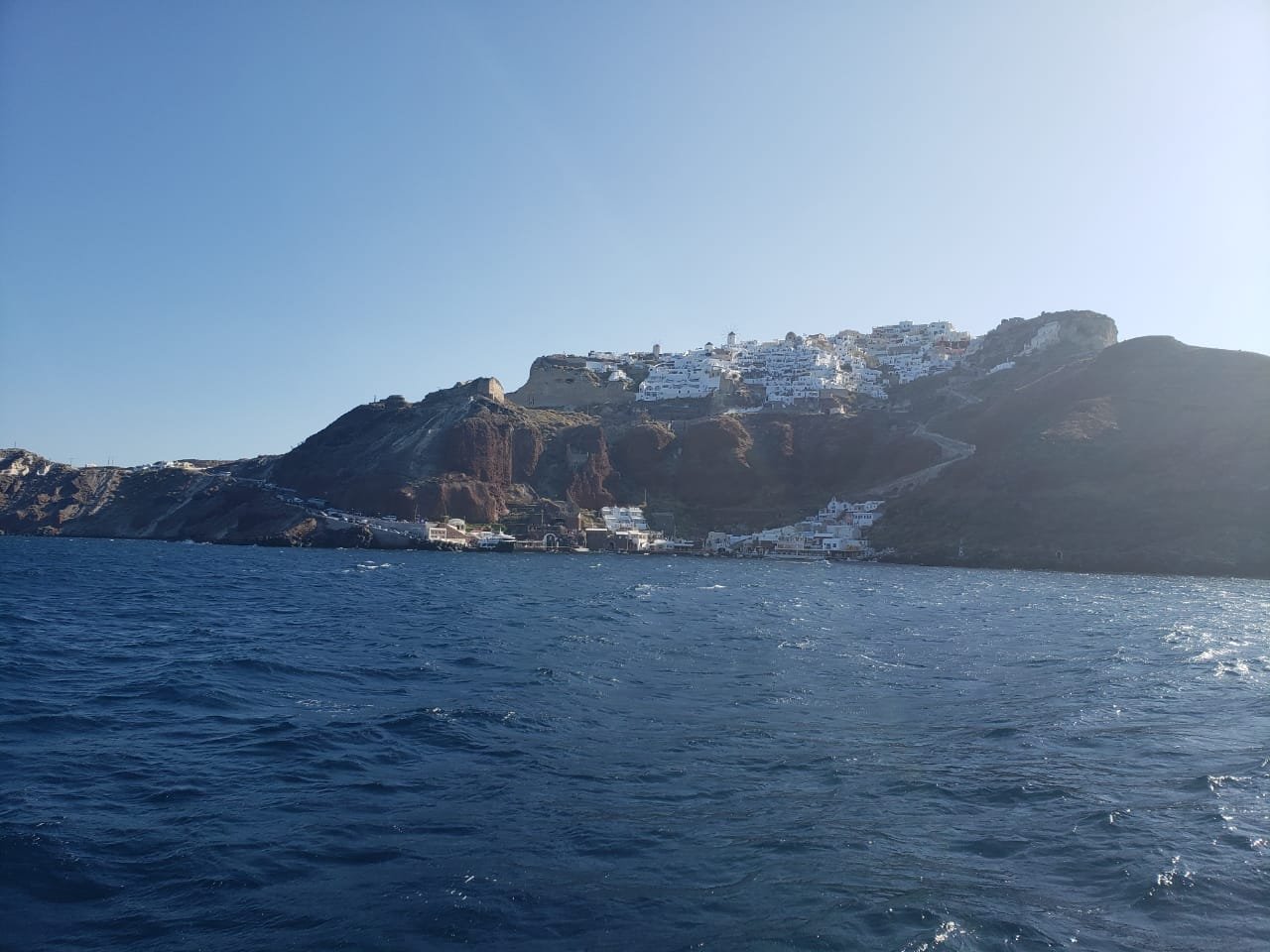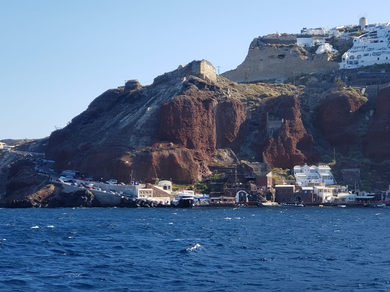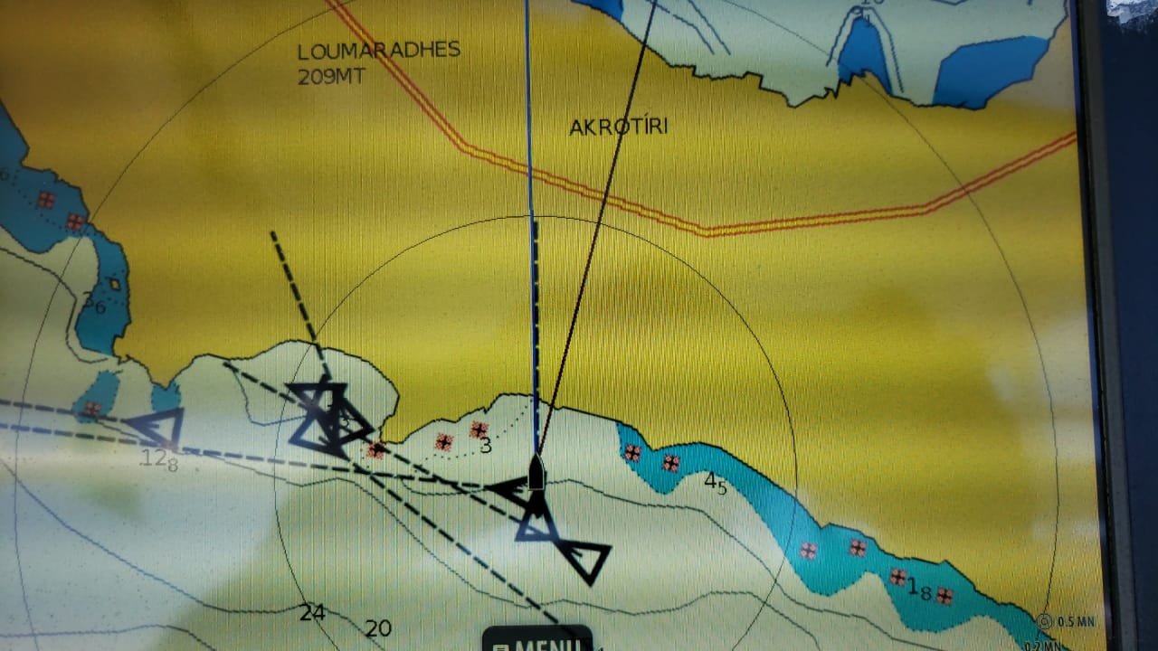 LaVie retornou para Grécia. Estamos novamente em Santorini. Mudamos a ancoragem para a praia de Acrotiri. Lá em Perissa estava impraticável ventos fortes e ondas de quase 1,5 metros. Seria impossível embarcar a tripulação que chega amanhã cedo. Dessa vez receberemos um casal de amigos smigos, Gilberto e Susana. Aline está vindo com eles.