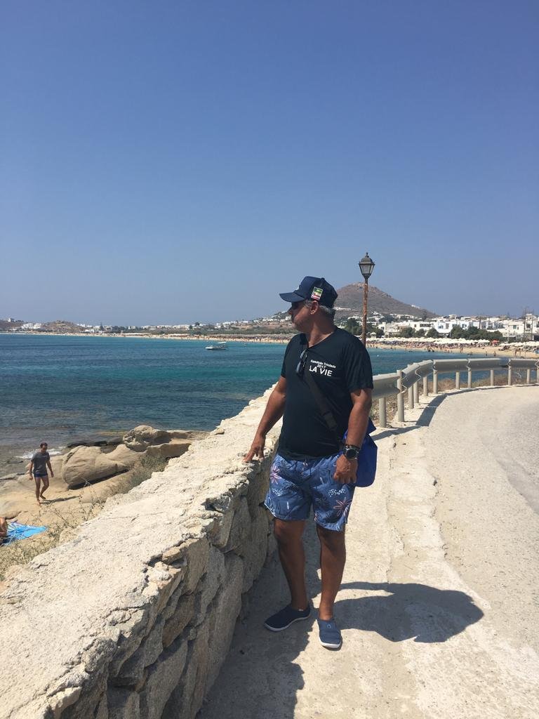 Tripulação explorando a Ilha de Naxos