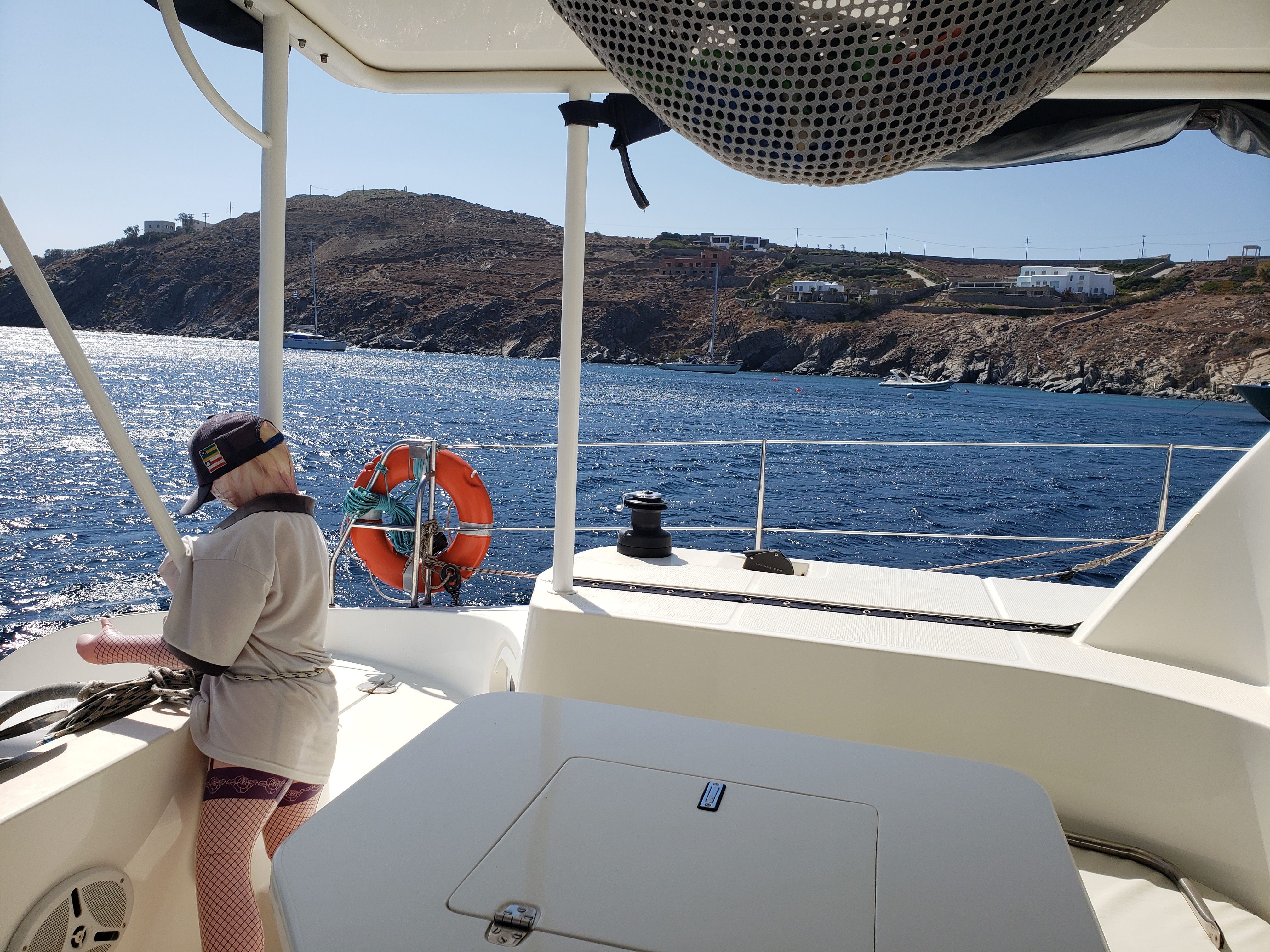 6 dias em Mykonos e só pegamos ventos fortes, rajadas passam dos 35 nós e deixa tudo desconfortável!! O tal do vento Meltemi se instalou e insiste em não ir embora. Agora a tripulação ficou reduzida, Gilberto e Susana partiram para Paris e ficamos eu, Aline e Neo embarcados. Já demos saída da Grécia na Imigração e só esperamos o vento melhorar para partirmos para Turquia, como já disse, vou invernar o barco por lá. A temporada de verão 2019 está chegando ao fim. Em 2020 seguiremos explorando a costa Malfitana, quero muito rever a ilha de Capri!!