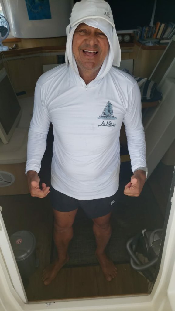 Estamos ancorados numa praia bacana. Tempo bom e ensolarado, temperatura ainda muito elevada e com pouco vento o calor aumenta.