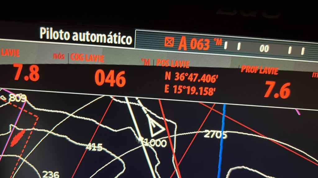 Seguimos ainda na Costa Leste da Sicília, ainda dá pra ver as luzes da cidade, mais um pouco e estaremos no meio do mar Adriatico.