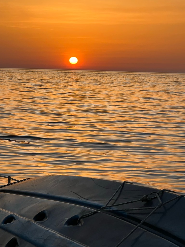 Até agora nada de peixe, nunca consegui pegar um nesse mediterrâneo. A todo Momento vemos tartarugas na flor d’agua e o alarme do sonar registra a presença deles, mas nunca vi um de perto 😱.