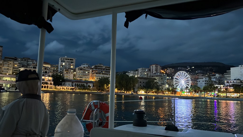 Esse tempo ruim fez mudar os nossos planos. Agora vamos tentar zarpar amanha a tarde e ancorar na baía de Palermo( Albania), passar um dia por lá, rumar para Vlorê, depois ir para o ultimo porto da Albania , SHENGJIN, lá passear e dar saída do LaVie da Albania e seguir para Montenegro até o dia 18.