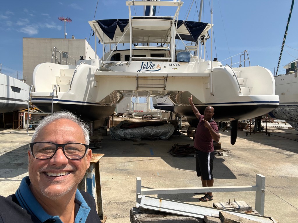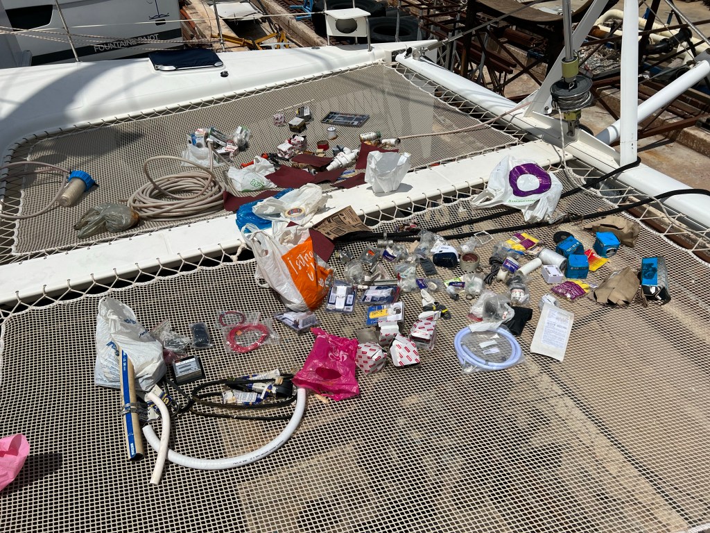 Antes passamos para abastecer de Diesel e completar o tanque de água. Fazemos água doce com o dessanilizador diariamente, mas é melhor encher tudo quando achamos disponível, pois aqui na Grécia é muito difícil.