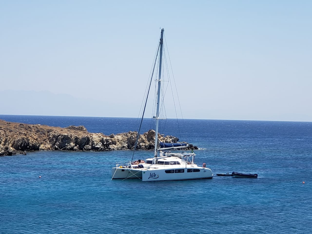 24/7 3:00 PMAncorados na Ilha de Skhinousa, junto a baía de Mirsini, lugar abrigado do Meltemi, água transparente, lindo local, como sempre por aqui.