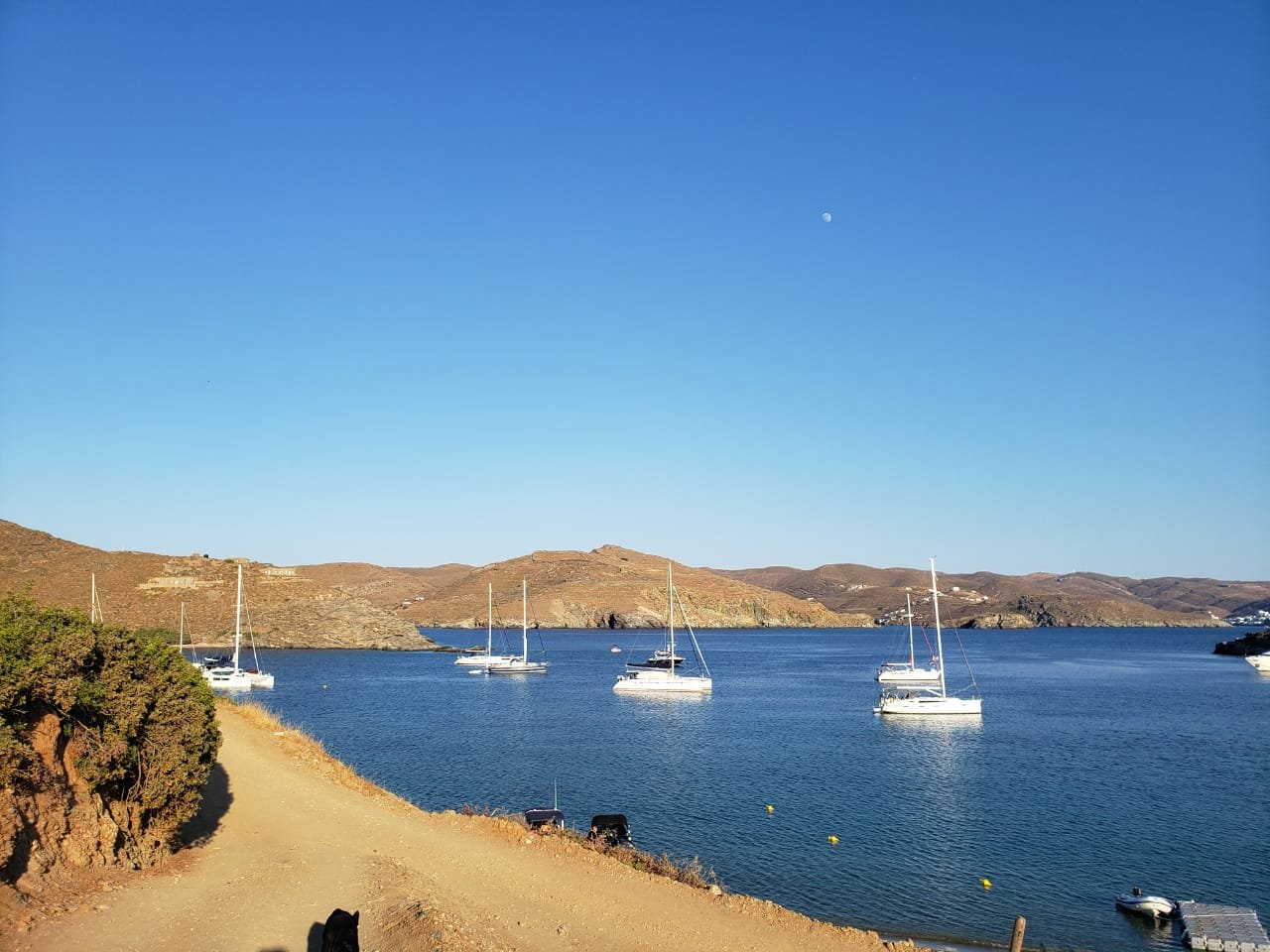 A previsão é melhorar dia 29, por isso ficaremos aqui aguardando. Mesmo porque só consegui vaga na marina em Athenas, distante 7,5 milhas de nós, para o dia 29 a tarde. Tudo lotado por aqui, e olha que custa em torno de 100 euros a diária, as mais baratas!!