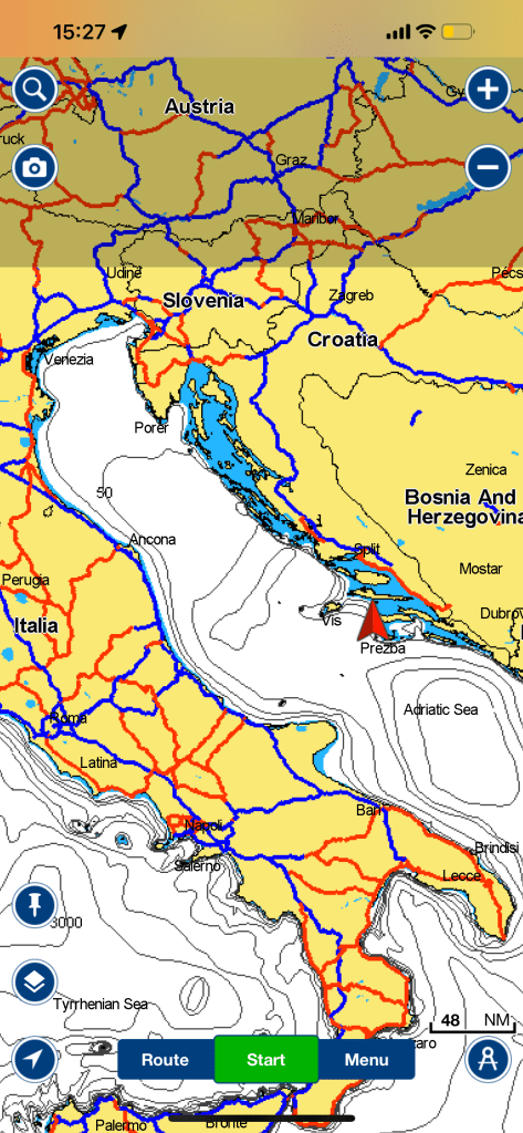 Chegamos em Veneza no tempo previsto, aliás um pouco mais cedo, a velejada foi boa demais, chegamos a 10 nós.