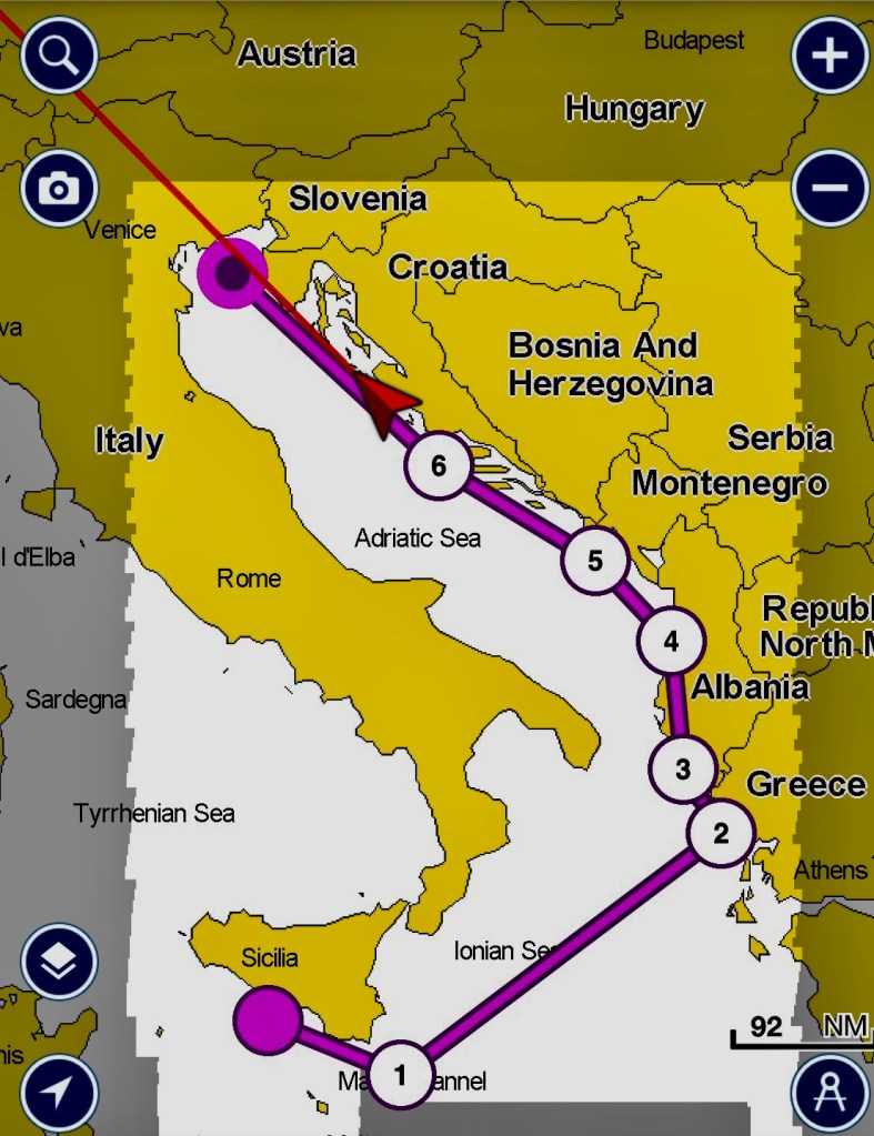 Depois de muito procurar, quase 2 horas, Conseguimos achar a policia marítima na praça de Roma e dar entrada na imigração, passaportes carimbados, agora estamos legalmente em território Italiano.