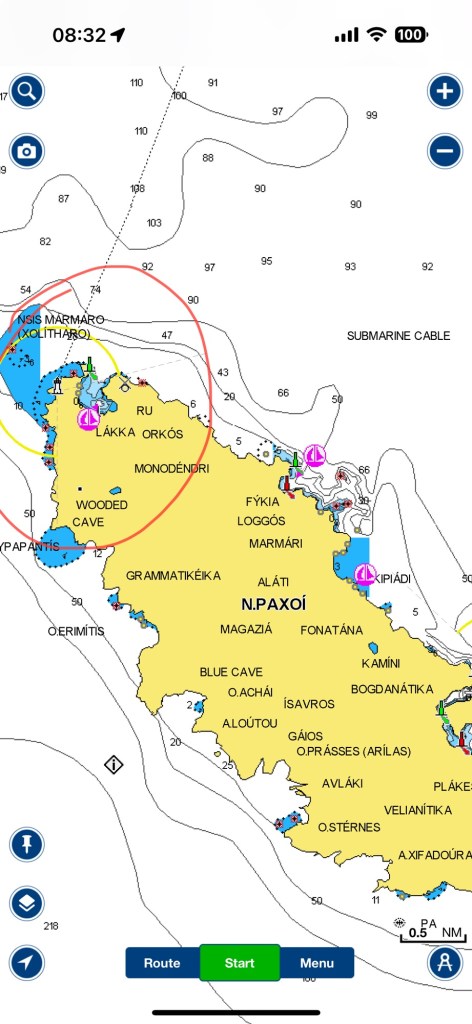Suspendemos de Preveza , continuamos o deslocamento até CORFU. Com uma parada na Ilha de PAXOS, em Gaios ou Laka, vamos decidir isso no caminho a depender do vento , previsão de chegada para 17 horas, local time.